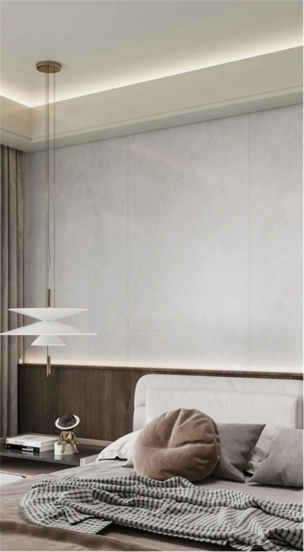健康瓷墙板具有零醛、防污易清洁、低吸水防潮、防刮耐用等优越的物理性能,对于卧室装修而言,是一种更好的健康材料。
