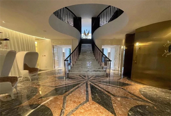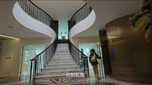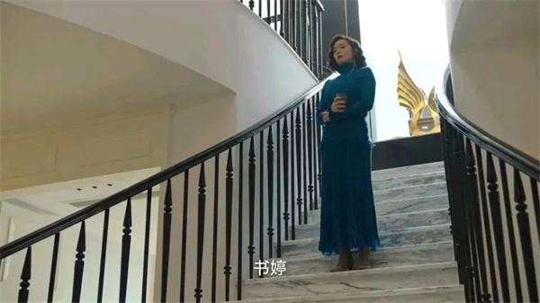 剧里别墅一进门的天鹅造型豪华对称大直梯,体现了住宅的大气端庄,对称美学结合家装设计更加强化了空间的艺术气质,更有高级感。