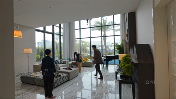 穿过楼梯,就来到了高启强家的超大客厅。两面落地窗设计,将窗外的景色,融入室内空间,挑空的别墅设计,让家看起来更时尚大气。