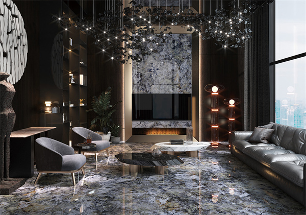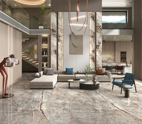 客厅铺设大理石瓷砖,可以为空间形塑美丽优雅、深具现代感的风格。奔放有致的纹路看似随意,实则凝聚了无穷的灵感,柔和的张力让每一丝纹理都显得自然分明,形成丰富的视觉效果。