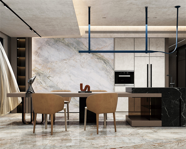 相比于客厅,餐厅更能代表一个家的温度。一个舒适温馨的餐厅,必定是颜值与品位并存的,大理石瓷砖独特的自然纹理,还原真正的肆意之美,整个空间显得更加华丽精致。