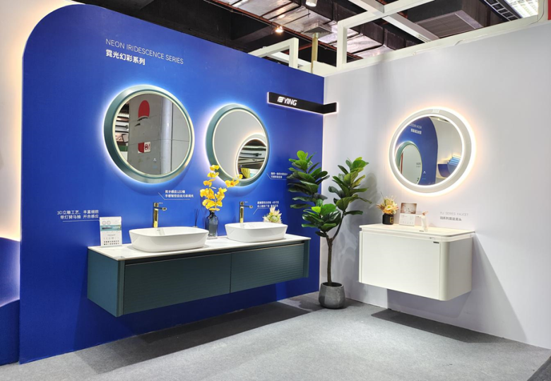 鹰卫浴位于广州国际采购中心,展位融入鹰卫浴logo线条和蓝色基调,辅以光线元素映衬,展现洁净理念,年轻活力感扑面而来。鹰卫浴展位现场人流爆满,让观展游客感受着非凡的设计,和对人的贴心关爱。