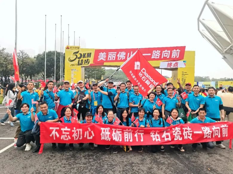 一直以来,钻石陶瓷以崇尚健康生活,传播正能量为理念,这次积极响应佛山的50公里徒步盛举,一方面体现了钻石陶瓷积极投身社会公益活动中,与社会形成良好的互动;另一方面也锻炼了企业员工的自身意志和毅力,展现了钻石人良好的精神风貌和积极向上的健康心态。千里之行,始于足下。钻石陶瓷将以更热情、更积极的态度投身到实际工作中,将以更踏实、稳健的步伐,一步一个脚印一路向前!