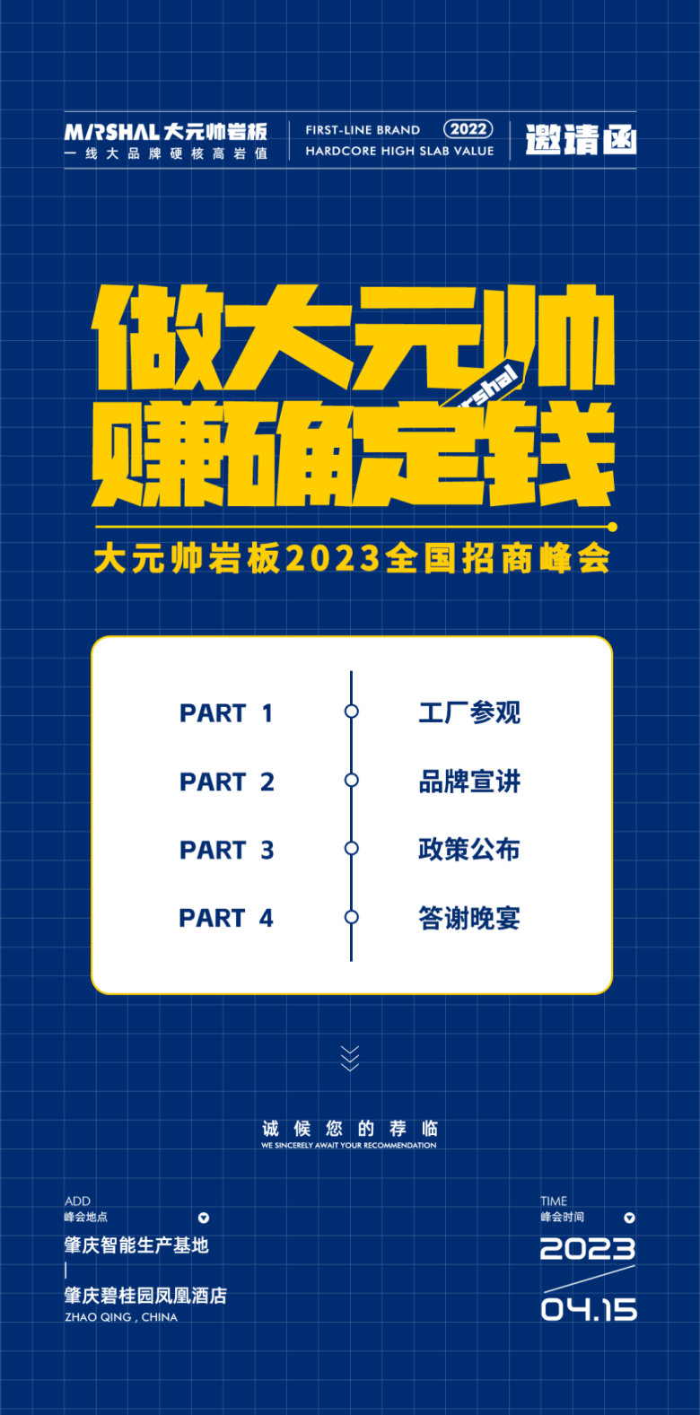 做大元帅,赚确定钱丨大元帅岩板2023招商峰会即将盛启,期待您的莅临!