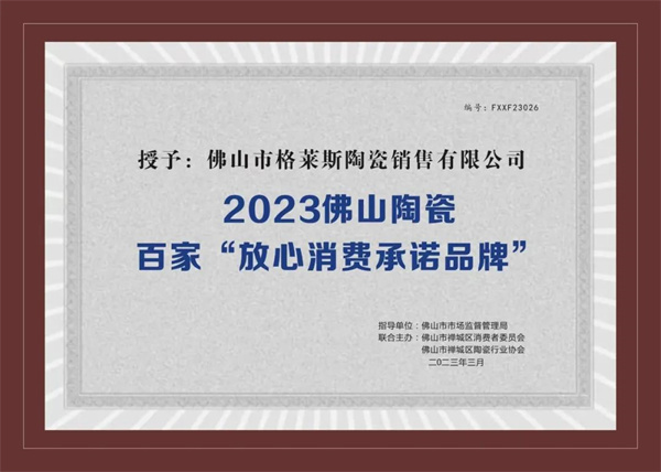 315品质护航 | 格莱斯荣获2023年佛山陶瓷百家“放心消费承诺品牌”
