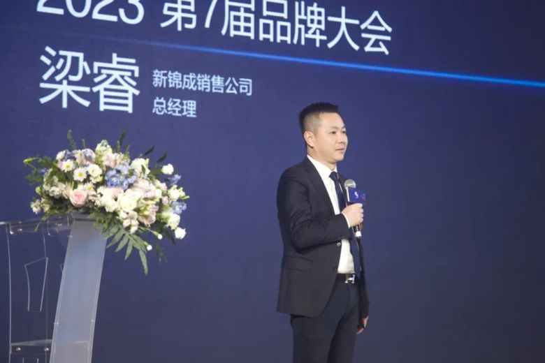 会议中,新锦成销售公司营销总经理欧书军以《追逐光,共赴远方》为主题,回首品牌画像生成,展望品牌发展蓝图,部署2023行动纲要。