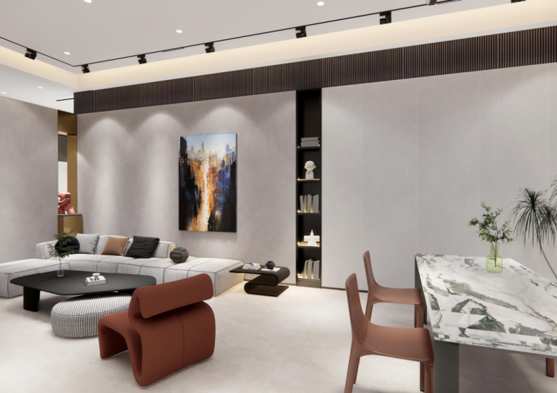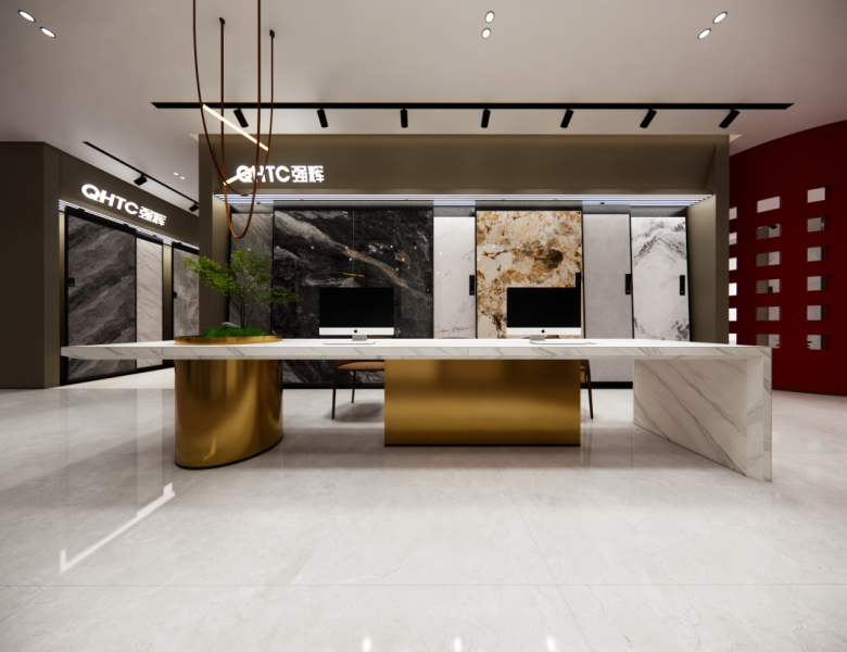 强辉陶瓷产品无色差、无变形、无裂纹,坚硬耐磨、低吸水率、抗酸碱、高抗弯性、纹理自然、健康环保,获得广大客户的喜爱,被应用于多类建筑空间,包括市政工程、教育医疗、地产项目、 商业空间等。