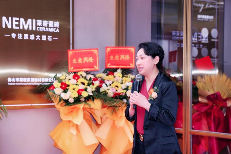 佛山中国陶瓷城集团总裁助理、中国(佛山)陶瓷总部总经理、中国(淄博)陶瓷总部总经理汤洁明为珍妮罗曼致辞,她表示在面对新的消费需求、新的工艺涌现的当下,珍妮罗曼坚持差异化创新开发,专注仿古砖定制,产品融合了意大利和西班牙最新的设计思路,为广大消费者提供了更加精美、独特的仿古砖产品,为中国陶瓷市场注入了新的活力。