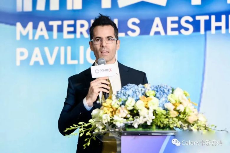 意大利Color-X瓷砖集团产品创意总监Agustino 奥古斯汀,现场分享了Color-X的产品设计理念与追求,带着诠释意式美学、传递自然舒适理念的初衷,探寻尊重品质生活的设计理念,提高人居环境的设计品味。