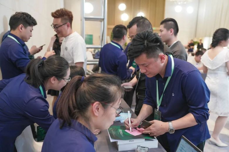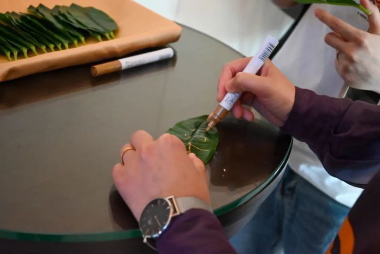 为了增加互动性,简舍特别设计签到环节,让每个人手上的叶子,去繁茂同一片“生命之林”,蕴含“简舍之树”枝繁叶茂的美好寓意。