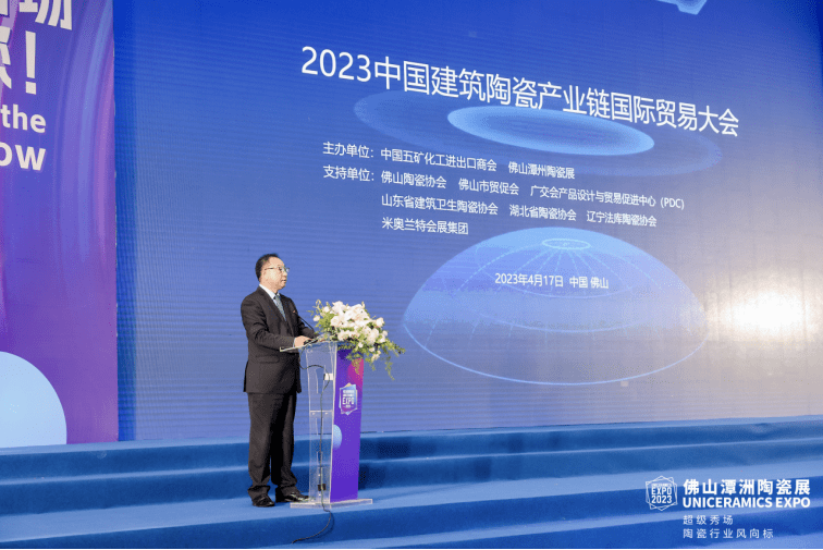 4月17日上午,2023中国建筑陶瓷产业链国际贸易大会在佛山潭洲陶瓷展超级会场隆重举行。