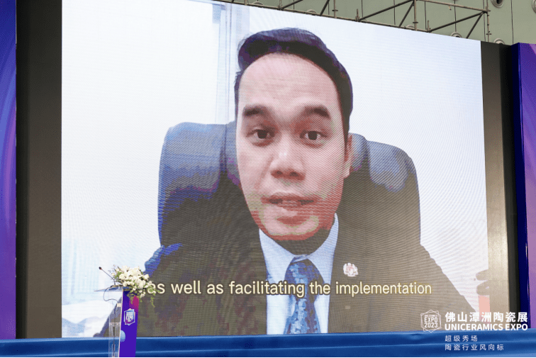 佛山市商务局甄泳亮副局长介绍了佛山建筑陶瓷产业情况,强调佛山市商务局将继续为企业降低成本,走出去拓市场方面做好充分服务,携手陶瓷行业推动佛山外贸高质量发展,共进新台阶。