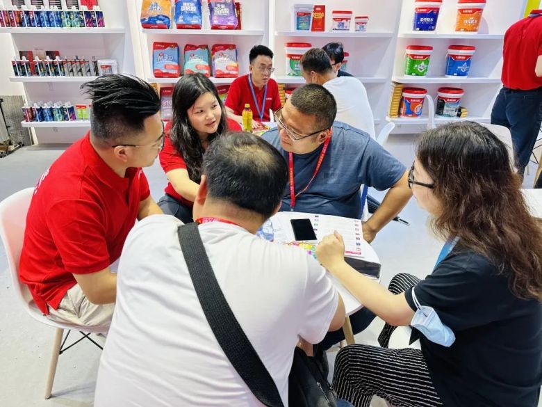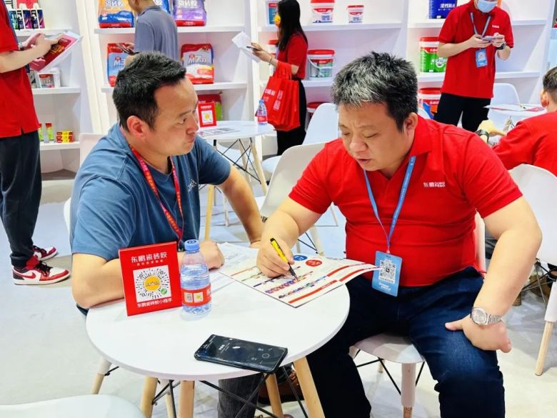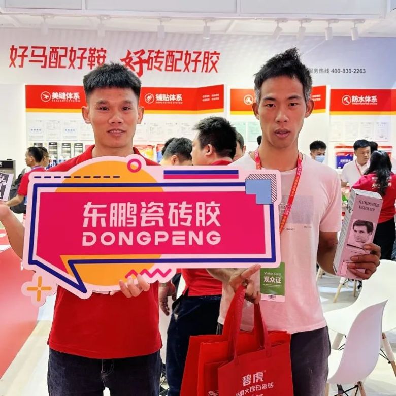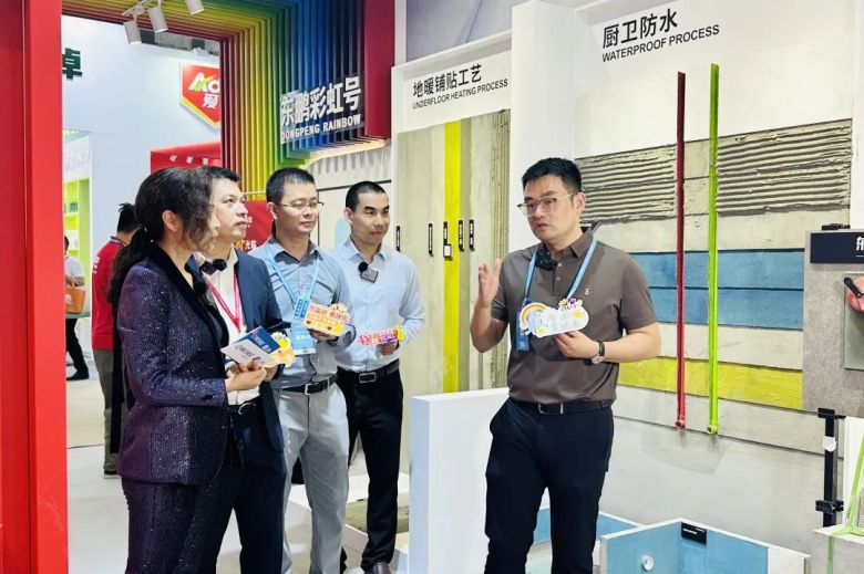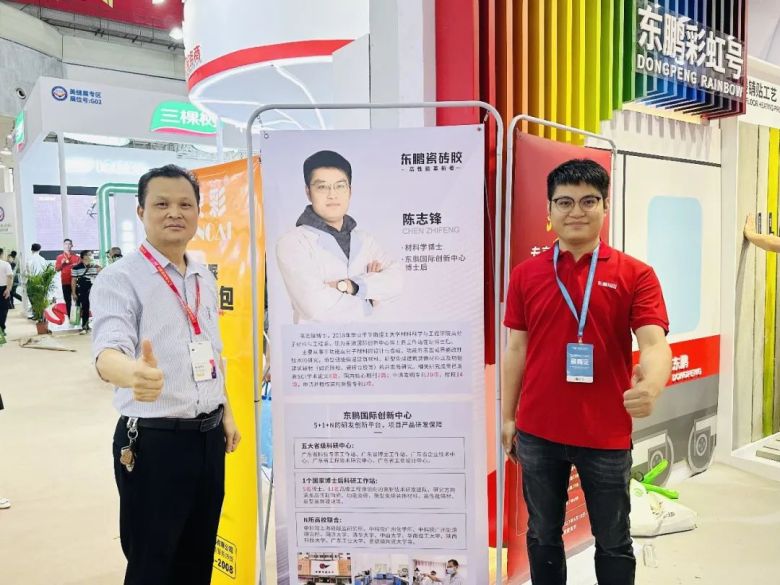 另外,本次展会从前期产品技术的研发攻关,再到展位现场的协助落地,均离不开东鹏国际创新中心的配合与支持。开展当天,东鹏国际创新中心技术综合管理部负责人钟保民与新材料技术研发部博士研发工程师陈志锋也来到现场,为东鹏辅材打call,让展会人气再上一层楼。