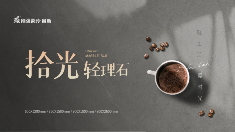 为回归生活本质,能强瓷砖以“光”为内容,以“轻生活”为方向,全新创研既有大理石瓷砖的自然纹理,又具备素色砖的质感肌理与色调的新产品——拾光·轻理石!