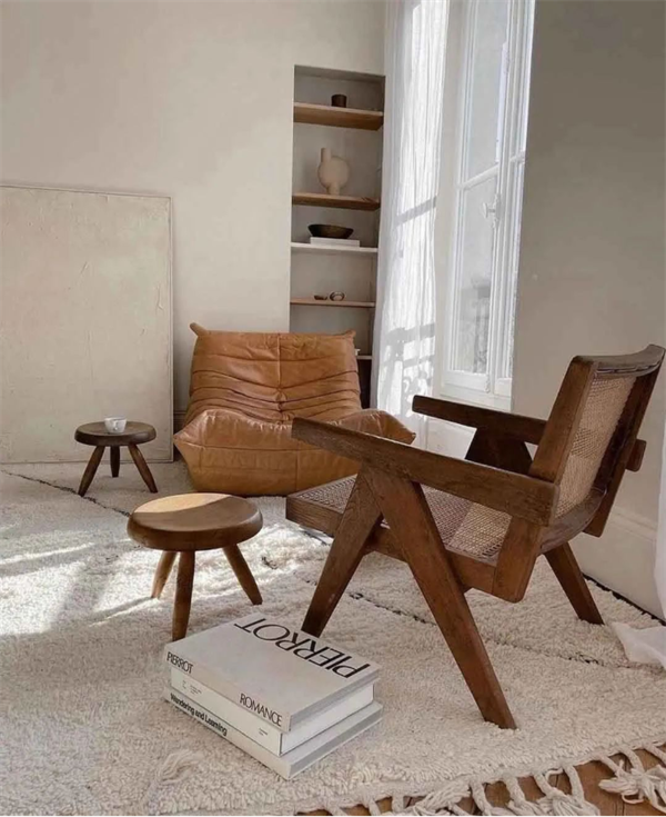 同色系是干净、高级的关键,阅读角也完全可以照搬这个方法。同色系的墙地瓷砖、沙发、地毯、桌椅,让角落更简单利落。
