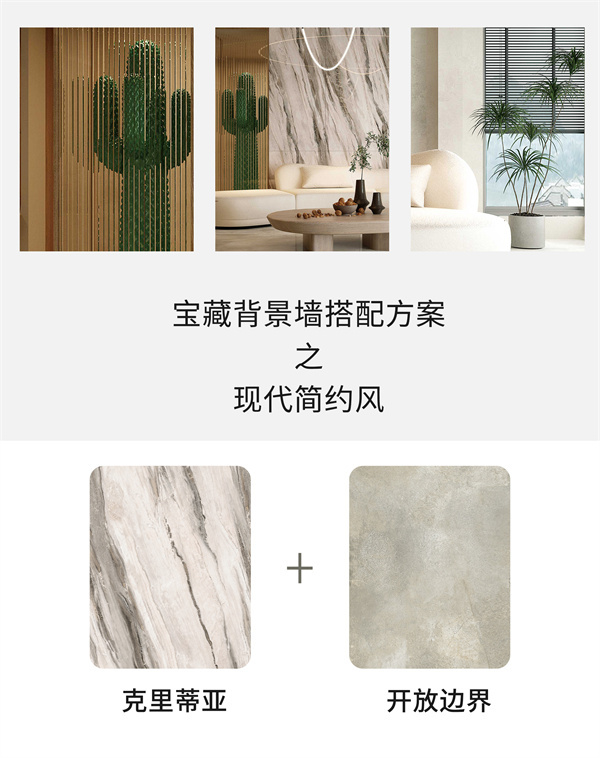 在装饰的细节上,材料本身赋予空间的高级感是其他元素都无法比拟的。【克里蒂亚】奢石质地纯净,在视觉效果上给人以高贵纯真的感觉,连纹完美展示墙砖一体化的整体感。