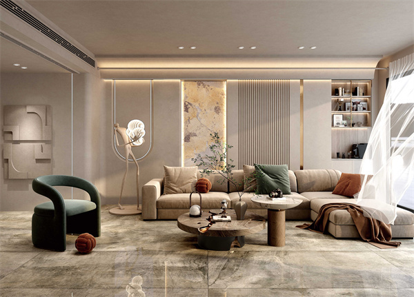 地面通铺丰富饱满的晶石花纹【环宇星程】奢石大板,创造出瑰丽华美的绝妙享受,精准把握意式轻奢风的时尚品味,让家更经久耐看,格调满分。