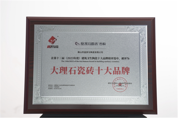 此次2023年度“建筑卫生陶瓷十大品牌榜”组委会授予皇家马瓷砖“大理石瓷砖十大品牌”荣誉,是对皇家马瓷砖在产品耕耘上的肯定,更是一份鼓励。相信未来,皇家马瓷砖将以产品创新不断驱动品牌向上发展,立足佛山迈向全国,为更多消费者提供更多样、更优质的岩板瓷砖产品。