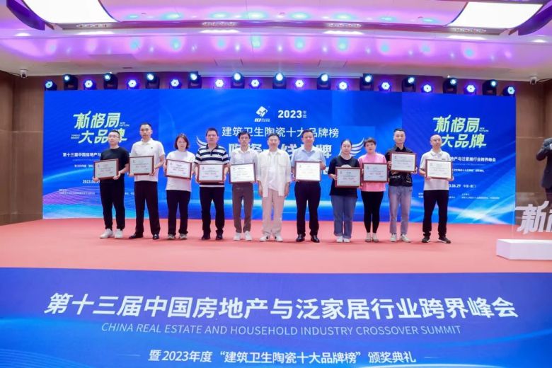 2023年6月29日,第十三届中国房地产与泛家居行业跨界峰会暨2023年度建筑卫生陶瓷十大品牌榜颁奖盛典,在厦门国际会议中心隆重举行,作为陶瓷行业权威的年度榜单盛典,“建筑卫生陶瓷十大品牌榜”,每年获得陶瓷、卫浴、房产、泛家居行业的广泛关注。