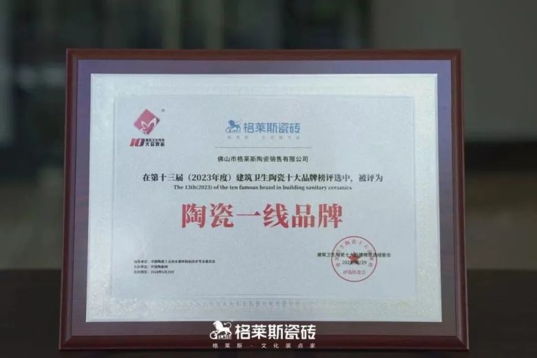 6月29日,在第十三届房地产与泛家居行业跨界峰会暨2023年度“建筑卫生陶瓷十大品牌榜”颁奖盛典上,格莱斯瓷砖荣获“陶瓷一线品牌”重磅殊荣。