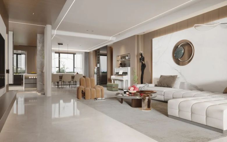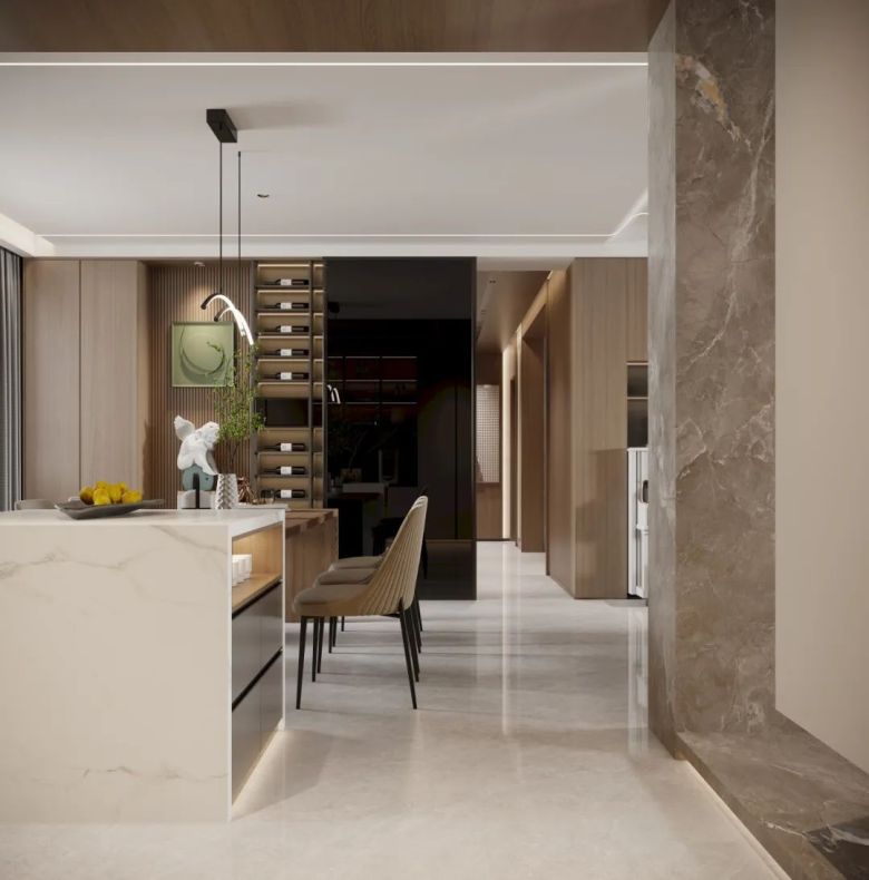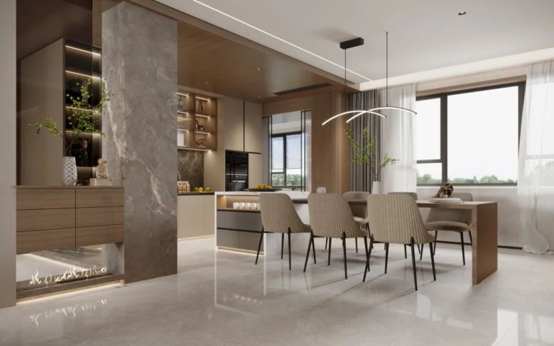 简洁沉稳的卡曼米黄,素雅而不失亮丽,纹理自然温润,给人舒适温馨的感官体验,使整个空间大方而气派。
