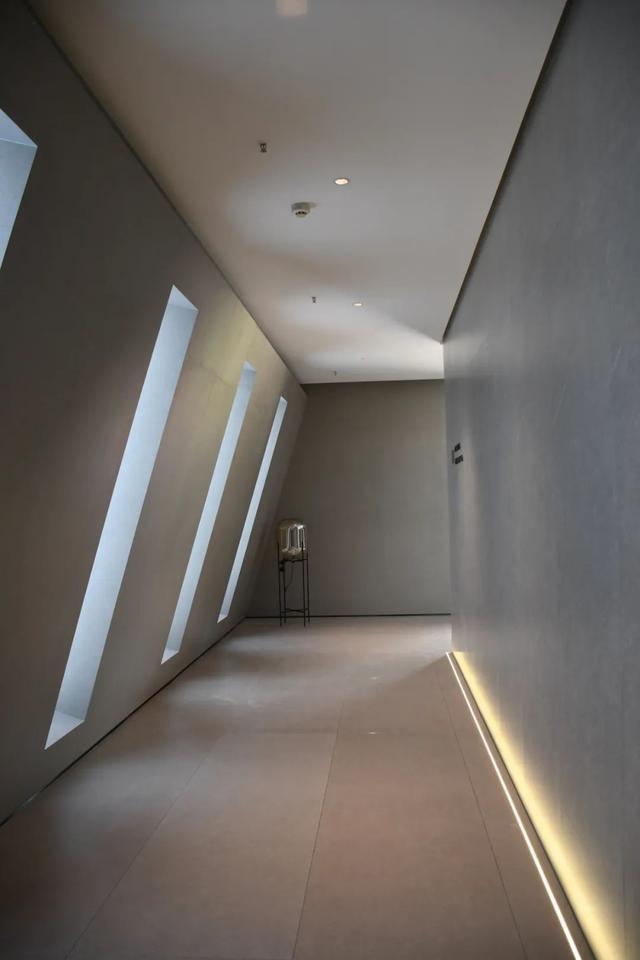 特别是通过多块矩形方块透出的光线,营造出的几何艺术走廊,让每个进入门店的嘉宾都有种“想停下来看看”的欲望。