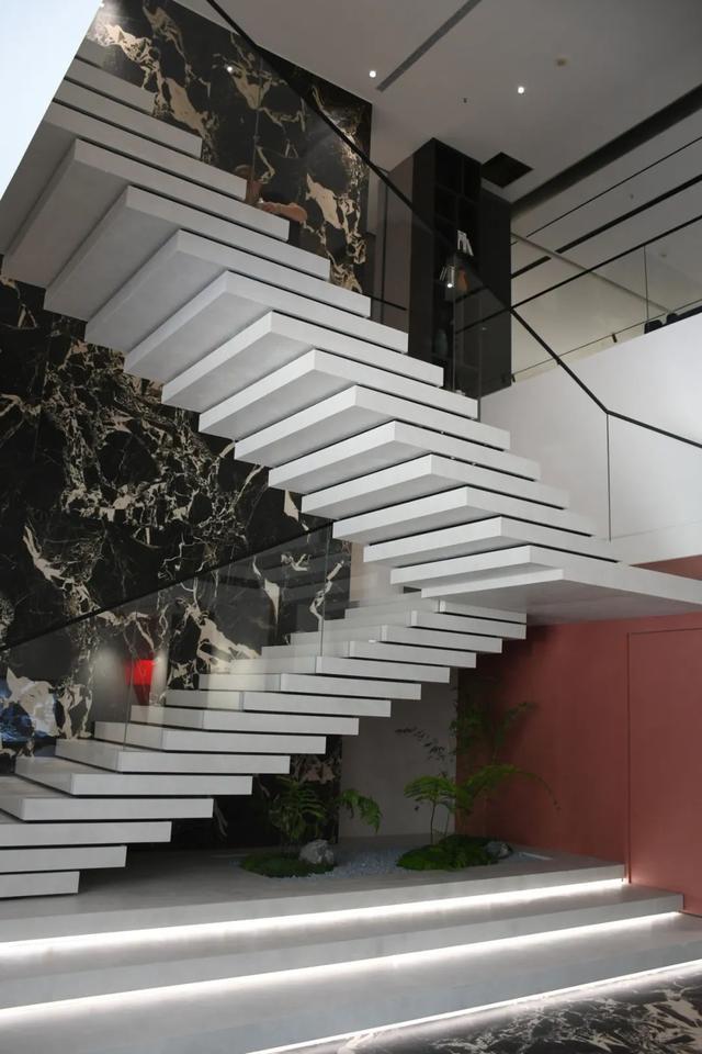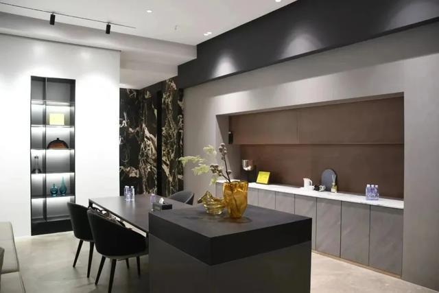 为让用户沉浸到从单品到空间,从空间到成品交付体系的体验,欧文莱通过整体空间设计,包括最吸引人的几何艺术走廊,也是岩板通铺打造出来的效果,以及岩板背景墙展示区、中岛台、楼梯展示区、地台等等,郑州欧文莱都合理地设计到每个空间当中,同时呈现出零角度倒角完美的加工工艺。