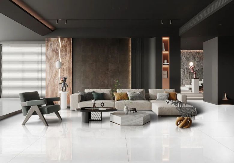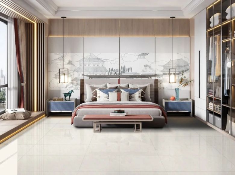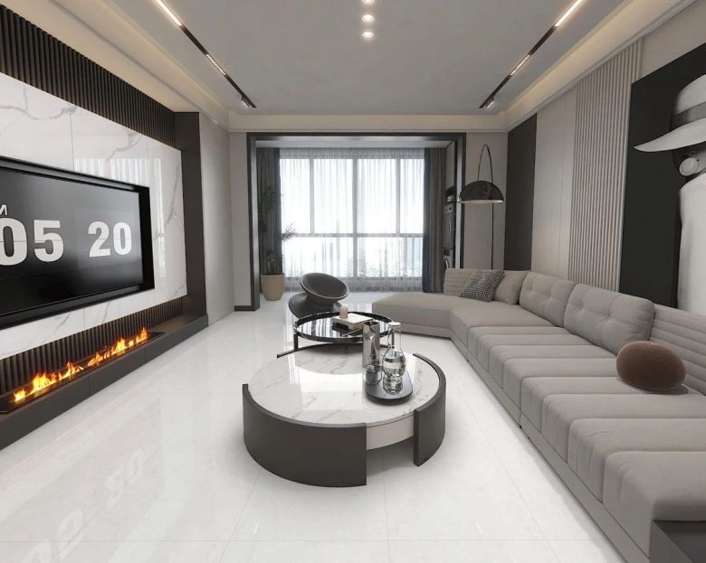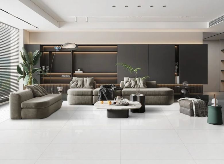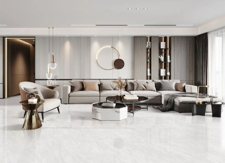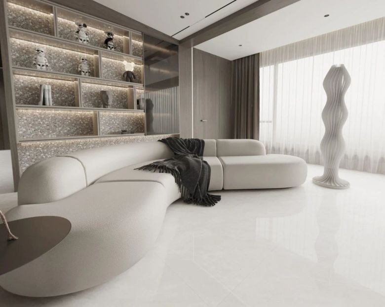 砖面干净清澈,淡淡的纹理如流水般自然流畅,搭配空间呈现出通透明亮、优雅的韵味。