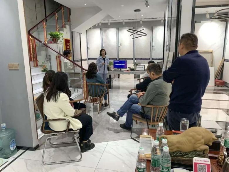 另外,课程内容还涵盖“企业文化实力”,从品牌定位到品牌优势中了解行业常见品牌概况,在顾客常见疑问中掌握异议处理技巧的方法;在品牌“生产工艺流程”中,明确品牌产品独特优势;在“销售技巧”课程中,寻求差异化产品介绍,差异化异议处理,差异化专业服务技巧等等。连州站河源站的家人们,大都是新入陶瓷行业,却是激情满满,在认真笔记中强化专业知识,在顾客接待中现学现用,收获满满。