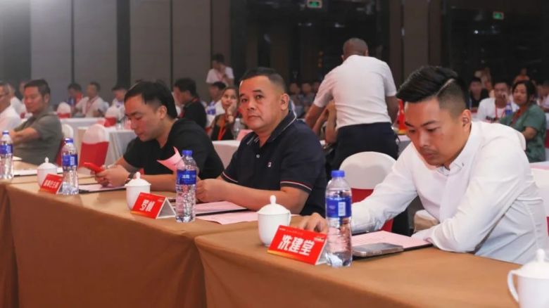 集团监事会主席梁其、集团总经理罗昶、集团总经理梁浩堂、集团营销总经理冼建堂、集团销售督导经理李朝霞,集团市场中心总经理冼桐华、集团市场中心经理颜伟生、品牌销售总经理苏永航、品牌销售副总经理李春宽等高层领导莅临会议现场,与新商共启新蓝图!
