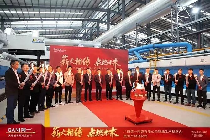3月30日,广西简一陶瓷有限公司智能生产线点火暨生产启动仪式在简一广西生产基地举行。本次仪式昭示着简一广西生产基地正式进入生产阶段,也标志着简一集团正式迈入“做强做大”发展新征程。