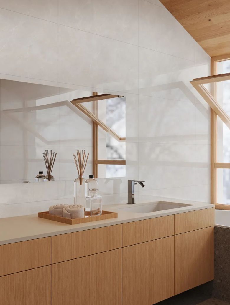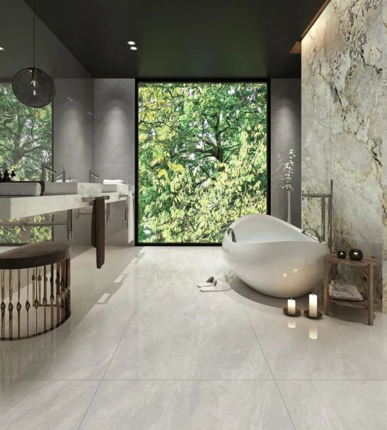 连纹的TWM715112G莫桑灰黄,将景深无限放大,拉阔了视觉空间广度。浴室内的落地窗,最大程度的将光引入空间,映照在砖面形成生活的倒影,由内而外散发着随性与张扬的意趣,震撼视觉感官,聆听瞬息万变,打开内心共鸣。