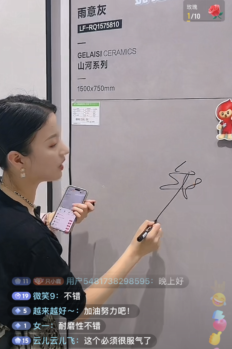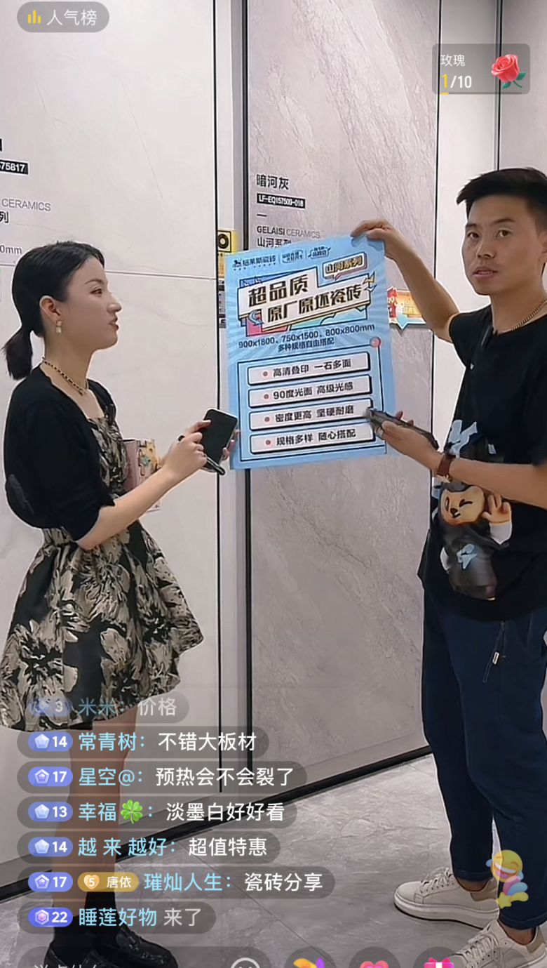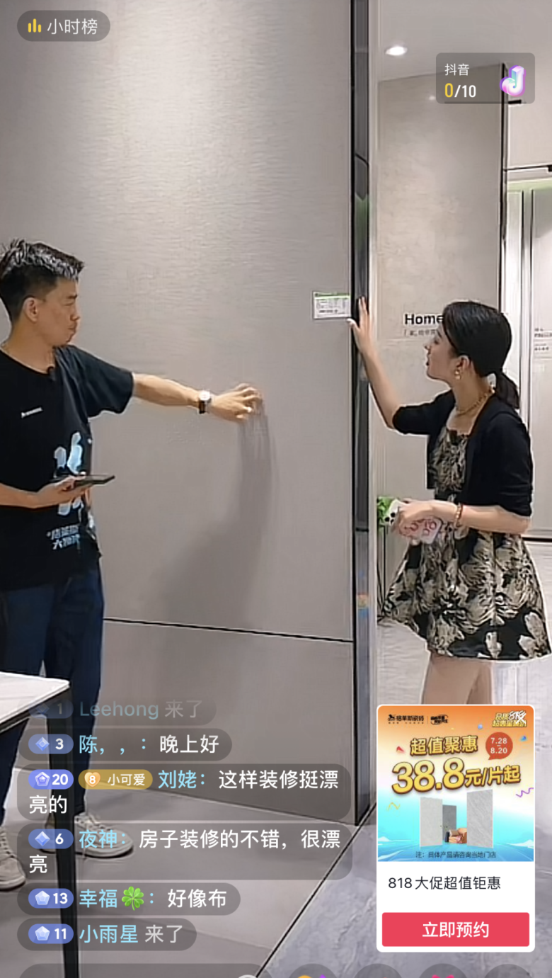 今年818品牌日火热依然,百万级抖音家居达人们携手格莱斯,最后一站西安门店两场直播,同样精彩不断,福利多多。通过直播间,达人为消费者分享格莱斯星级产品,把优惠带给全国观众。直播过程中利用现场测评,甄选家居好物,使用不同工具验证瓷砖性能,让观众直观感受格莱斯产品卓越品质。