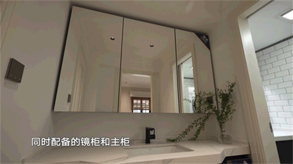 在卫浴空间内,细心选用了恒洁纯享系列定制浴室柜。它具有强大的定制功能,业主和设计师可以根据自身的格局、功能、喜好定制,自由适配多种风格,柜体模块化组合,兼顾艺术与功能的双重需求。