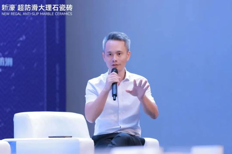 佛山市陶瓷行业协会秘书长尹虹分享说道:面对房地产过剩、暴雷的困境,2023年我国瓷砖产量大幅下滑,企业更要重视创新差异化,新濠持续技术创新推出超防滑差异化IP,并上升到品牌长期发展战略,这无疑是开创了品牌差异化发展的全新路径,非常值得赞赏。 ▲昊晟集团品牌营销事业部总经理 游俊