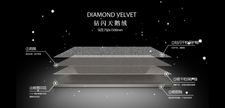 钻闪天鹅绒系列,汲取时尚高级天鹅绒面料为灵感,创新配方、独创技术【六合一工艺】把柔光+干粒+耐磨+防滑+防污+素色六大特性融入产品中,6°原生微光光感、钻闪光感、丝绒柔滑的触感呈现于产品表面,集众长于一身,品颜兼具,为空间注入简奢时尚、温柔浪漫的气质。
