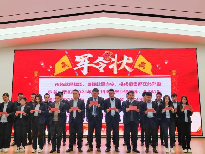 “使命必达”一句句响彻云霄的誓言,坚定而有力量。裕成全体已经做好搏击市场的准备,相信裕成瓷砖这样一支威武之师,必将在2024年的战场上所向披靡,战无不胜。