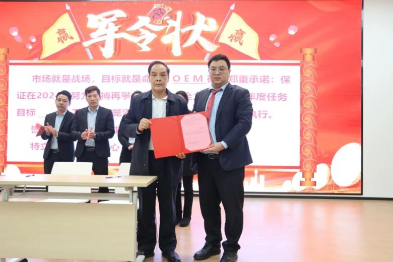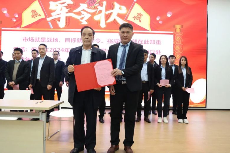 作为本次动员会的重头戏,在大家的见证下,裕成瓷砖各销售战区全体成员分别签署了军令状,展示了势必达成业绩目标的信心。