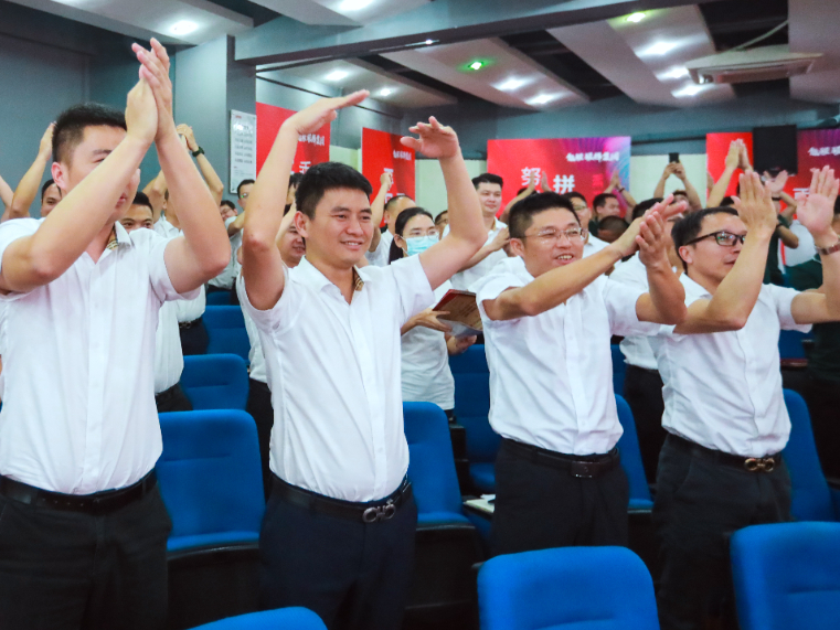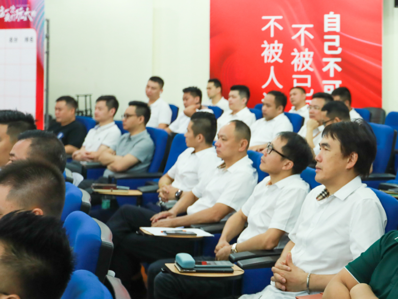 集团营销总经理冼建堂为大家加油打气,面对当下的市场环境,我们要勇于接受变革与挑战,积极创新求变,不断提升个人能力和竞争力,才能更好地适应市场变化。