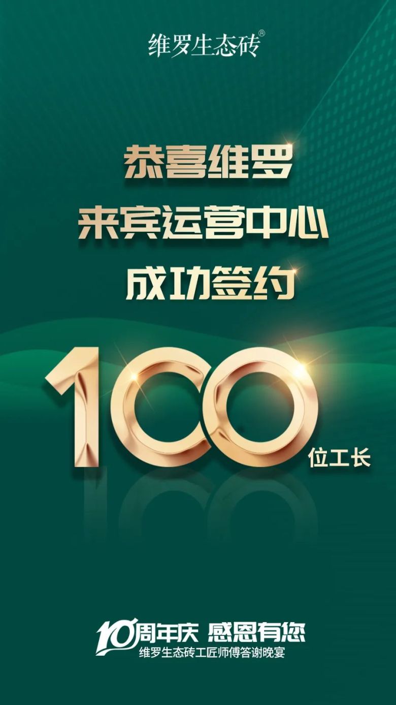 工匠师傅一直是维罗生态砖的重要渠道合作伙伴。未来,维罗生态砖也将秉承初心,以诚实、守信、合作、共赢的发展理念,始终坚持生态定位不动摇,携手更多的工长,一起向阳而生,一起生态共赢!祝福维罗来宾运营中心十周年庆节日快乐,祝愿再攀高峰,销量长虹,生意兴隆!