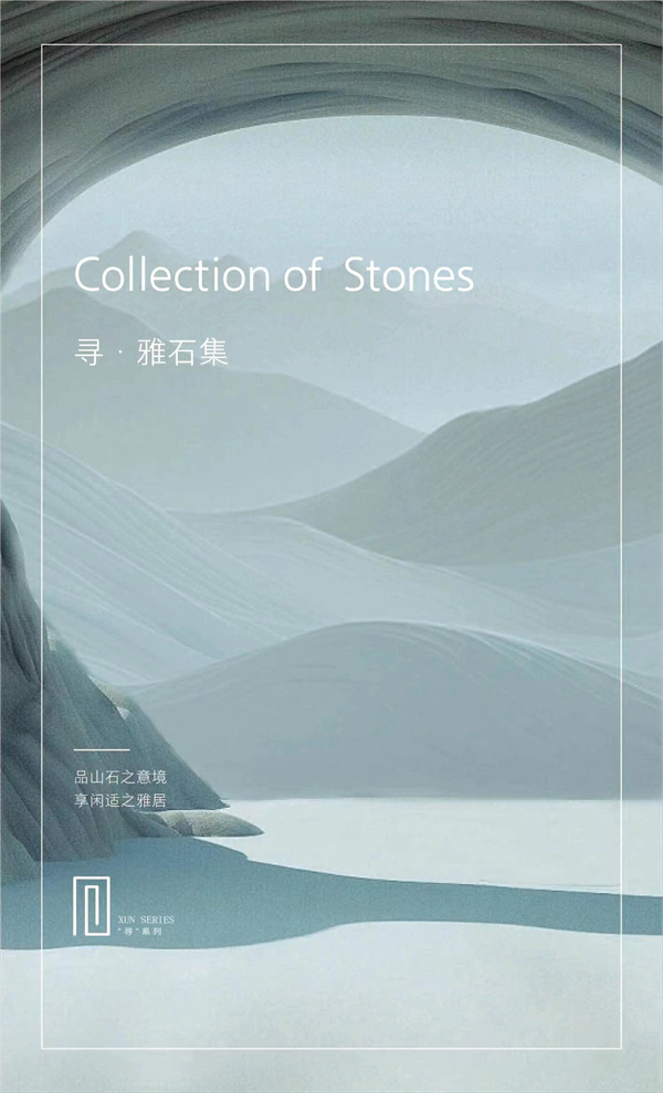 雅石集的纹理灵感源于宋代赏石的审美标准-瘦、皱、漏、透,提取出四种天然原石纹理——玉石、理石、洞石、莱姆石,变化流畅、充满自然意趣。