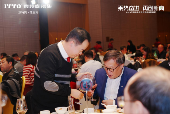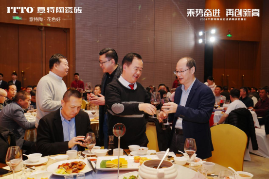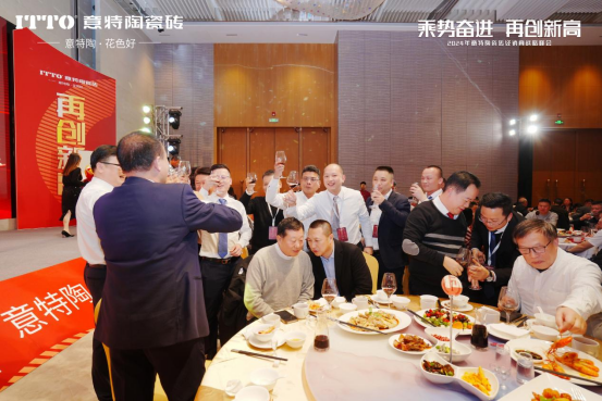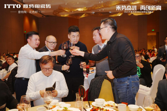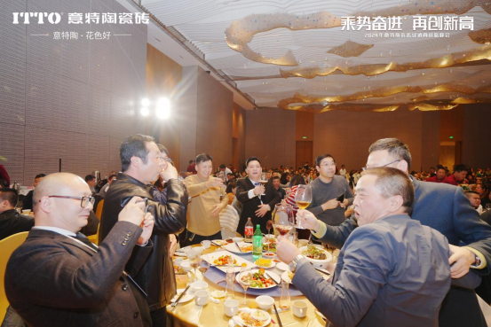 随后,意特陶品牌副总经理赖成东携一众集团领导与品牌领导上台,与全体来宾共同敬酒!晚宴正式揭开帷幕!