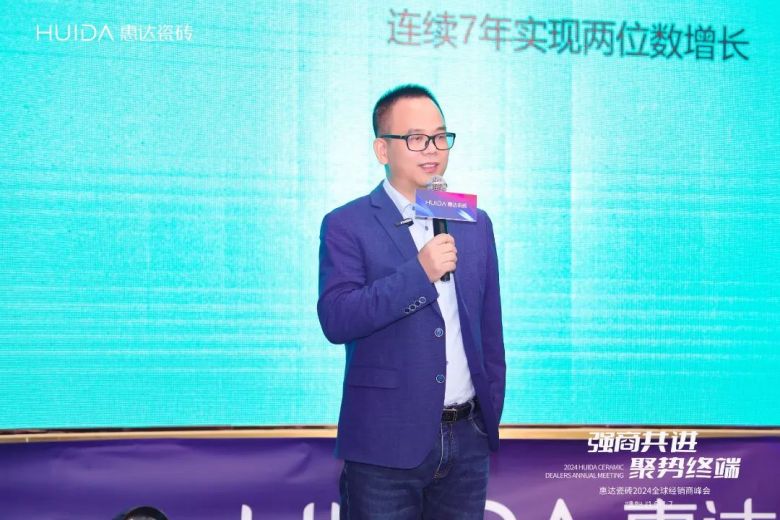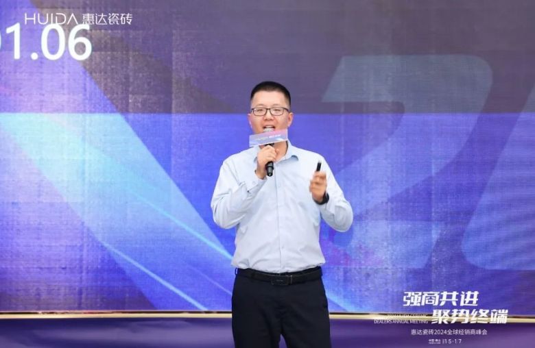2023年,市场环境严峻,惠达瓷砖以品牌高质量发展为指引,以超防滑产品逆势突围,实现了连续7年两位数增长!惠达瓷砖事业部总经理严仕杰 从渠道规模、产品开发、产品展示、二次翻新、品牌IP打造、品牌培训等多个维度总结了2023!2024年,瓷砖板块将落实集团的战略部署,强商共进,聚势终端。严仕杰表示:终端零售是实现新增长的关键措施,需要得到高度重视和坚定实施,他提出:给产品,给品质,给帮扶,给流量,给培训,给爆款,给交付,给效率的“八给”的强商、扶商计划。他说:八个“给”是我们态度,也是我们信心,是我们承诺,也是我们决心,是我们底气,也是我们能力,我们有信心,有决心,也有能力在“既要、又要、还要”的环境中赢取市场,笑到最后。