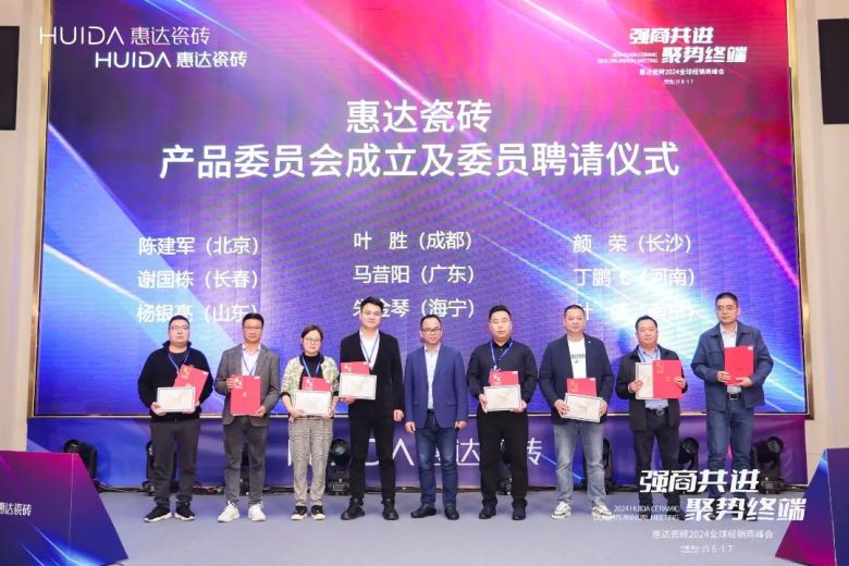 产品是决胜市场的根本,为迎接品牌升级过程中面临的挑战和机遇,会上,惠达瓷砖成立“产品决策委员会”及产品指导委员聘任仪式,致力促进产品创新升级,优化产品矩阵,强化产品市场竞争力,形成市、销、研、产四维一体核心战略,实现用产品驱动品牌升级以品牌拉动产品销售。