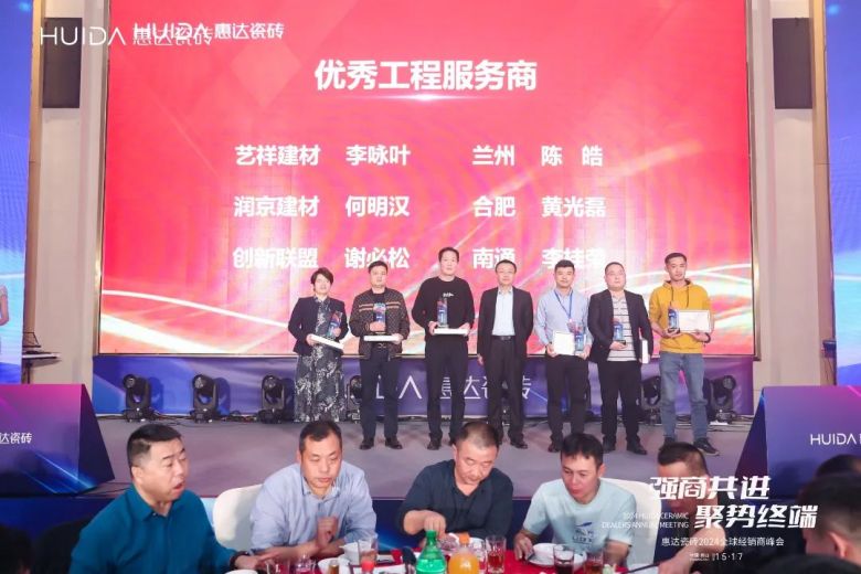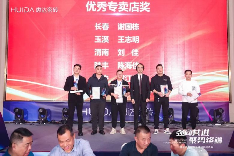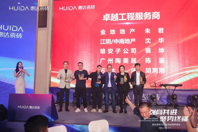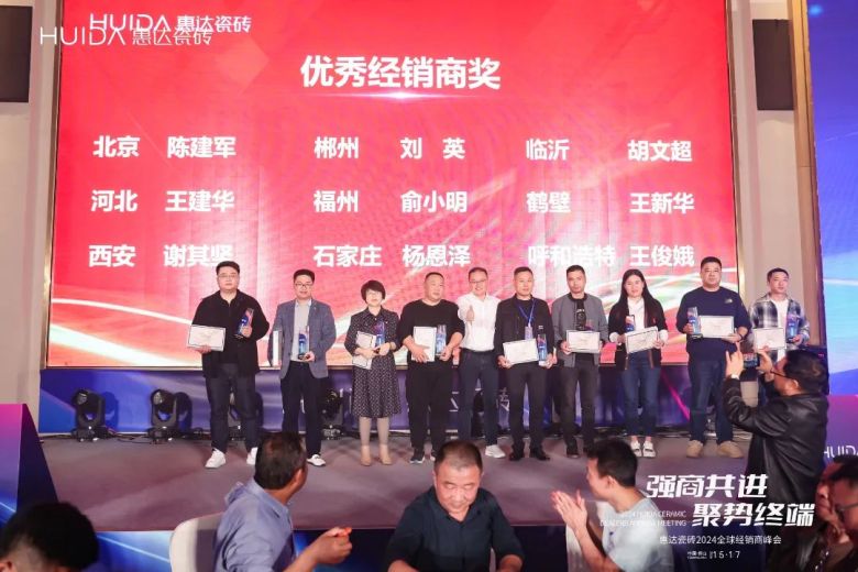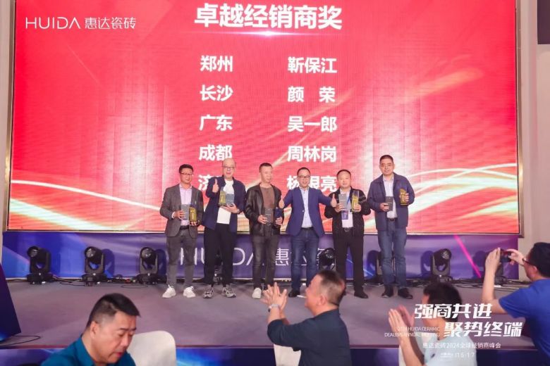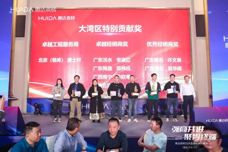 一段砥砺奋进的征程,离不开榜样的力量;丰收的累累硕果,也离不开同行者的汗水和拼搏。本次峰会还举办了“惠达瓷砖2023年度颁奖盛典”,隆重表彰2023年度为惠达瓷砖发展做出重要贡献的优秀经销商代表,先后颁发了年度“卓越工程服务商”、“优秀工程服务商”、“卓越经销商奖”、“优秀经销商奖”、“优秀专卖店奖”、“大湾区特别贡献奖”等奖项。