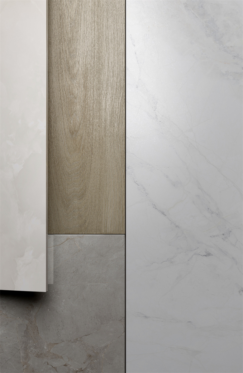 通过不断的设计与试样,2024年春季新品——「寻」系列得以亮相。此系列精选了“原生石纹”、“原生木纹”两大经典题材,将纹理再次创作,呈现出简洁的轻纹理;同时,提取宋代画作的雅致色彩,延续宋代美学及当代生活理念,结合最新立体微雕工艺技术,打造蕴含东方美与强质感的超级产品系列,其中包含三大子集——逸石集、雅石集、臻木集。