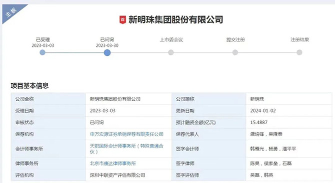 同样,1月2日,深圳证券交易所官网显示新明珠恢复了上市审核进程。