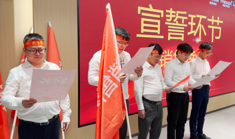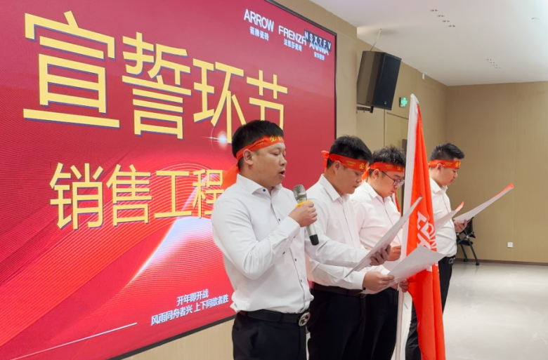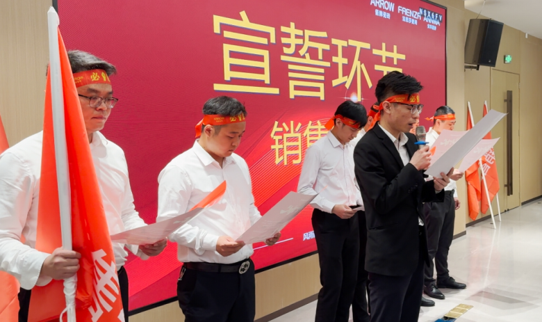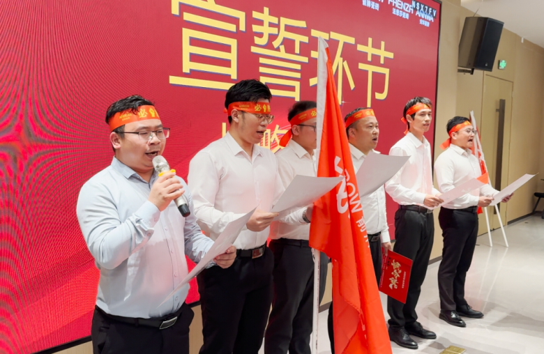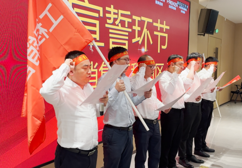 各大区经理带领成员们上台对2024年工作部署与销售目标进行集体宣誓。这是一份压力与动力并存的双向承诺,也是一份“不破楼兰终不还”的决心。