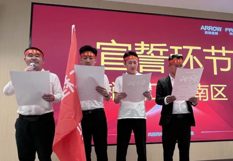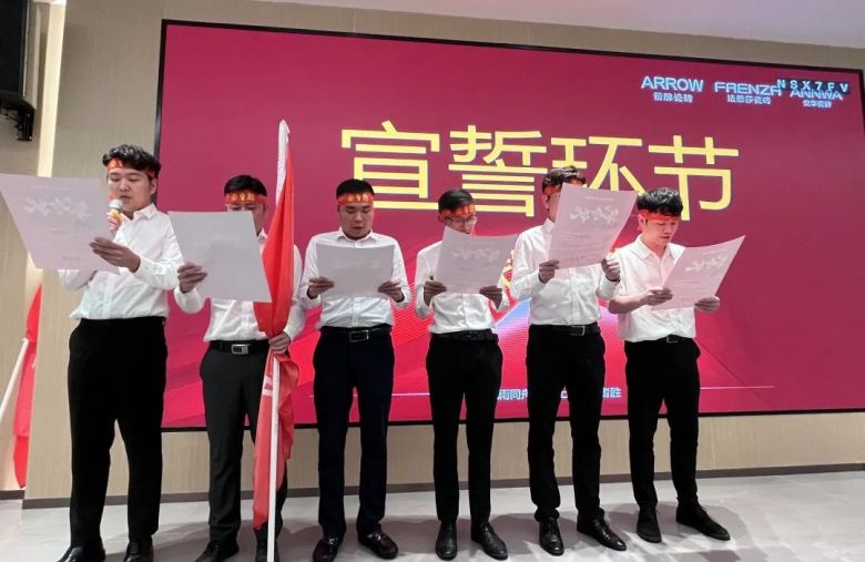 “使命必达”一句句响彻云霄的誓言,坚定而有力量。全体已经做好搏击市场的准备,相信箭牌瓷砖这样一支威武之师,必将在2024年的战场上所向披靡,战无不胜。