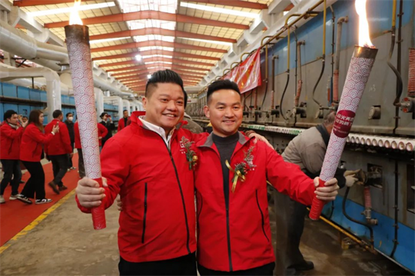 在点火仪式现场,员工们以饱满的精神和昂扬的斗志迎接窑炉的点火。随着鞭炮齐鸣,各位领导开始点燃窑炉盛产之火,熊熊火焰映照着激情与热烈,也承载着对未来的期许,象征着新强盛企业匠心技艺与出色品质的薪火相传。